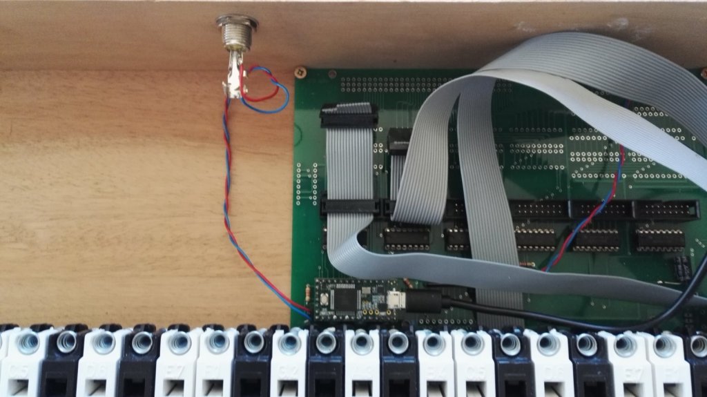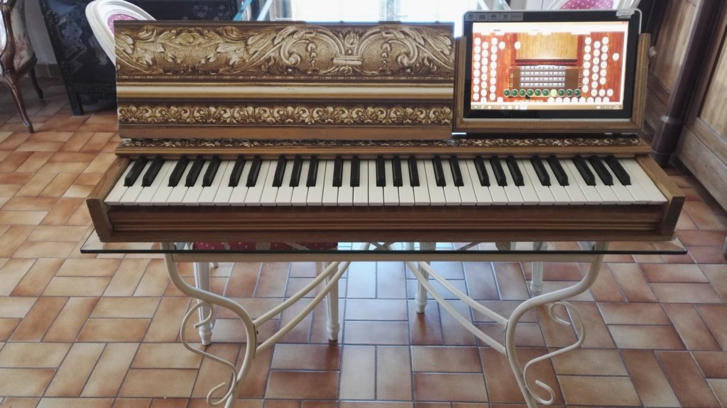 | Orgue virtuel 2017 Avec un seul clavier matricé FATAR Directement piloté par ma carte KI6x8x8_USB | PC ACER - RAM : 4GO - Disque dur : 100GO SSD (solid State Disk) Avec écran tactile | Une seule carte KI6x8x8 MIDI_USB suffit ! Cette carte peut contrôler directement jusqu'à 6 claviers et pédalier. Avec 64 boutons en entrée et 32 sorties lumineuses |