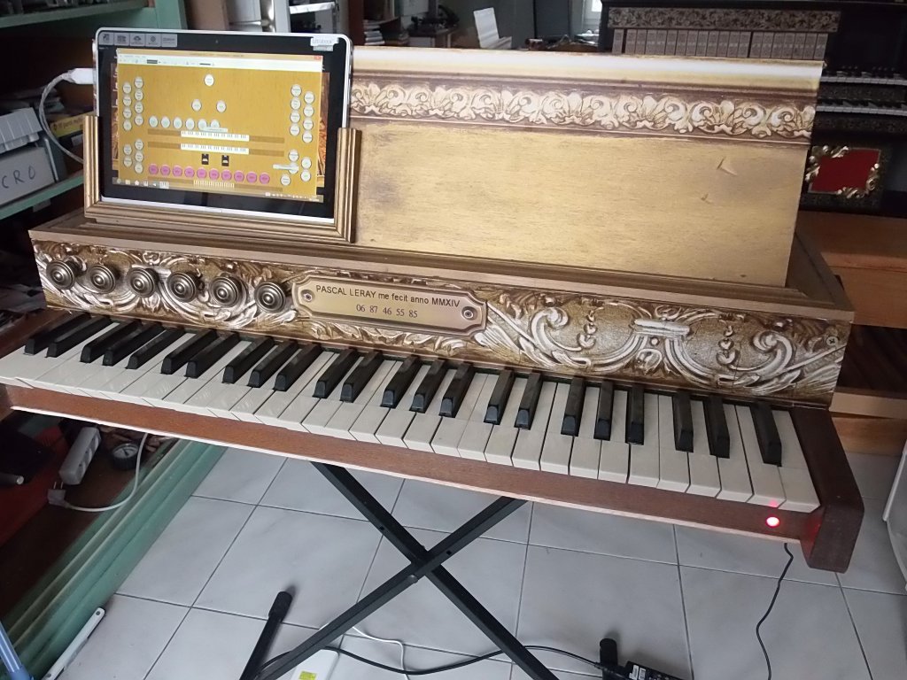 J'ai réalisé cet orgue avec ma carte électronique qui permet de commander directement jusqu'à 6 claviers/pédalier, et une tablette PC.
