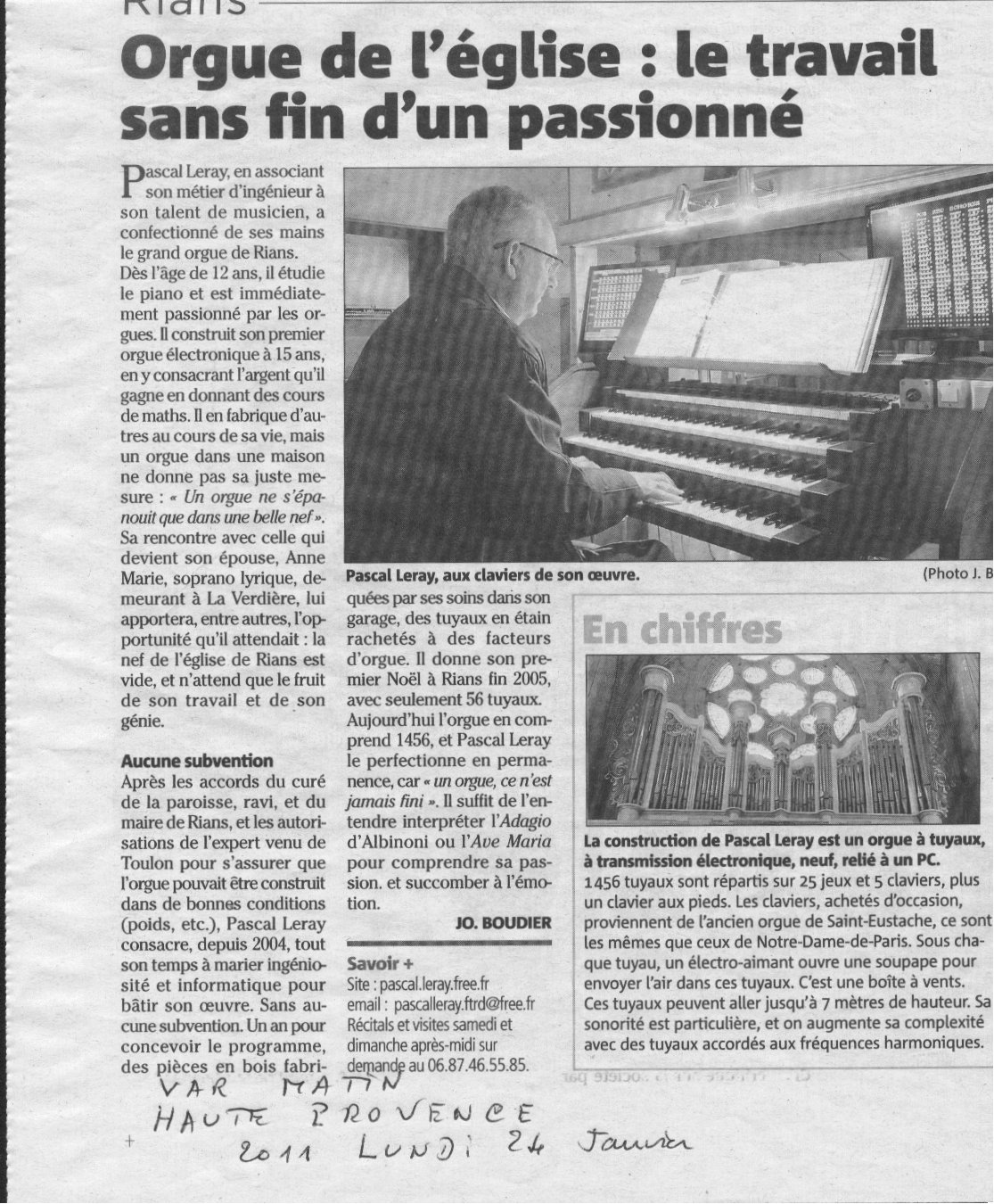 ARTICLE DE VAR MATIN DU 24 Janvier 2011