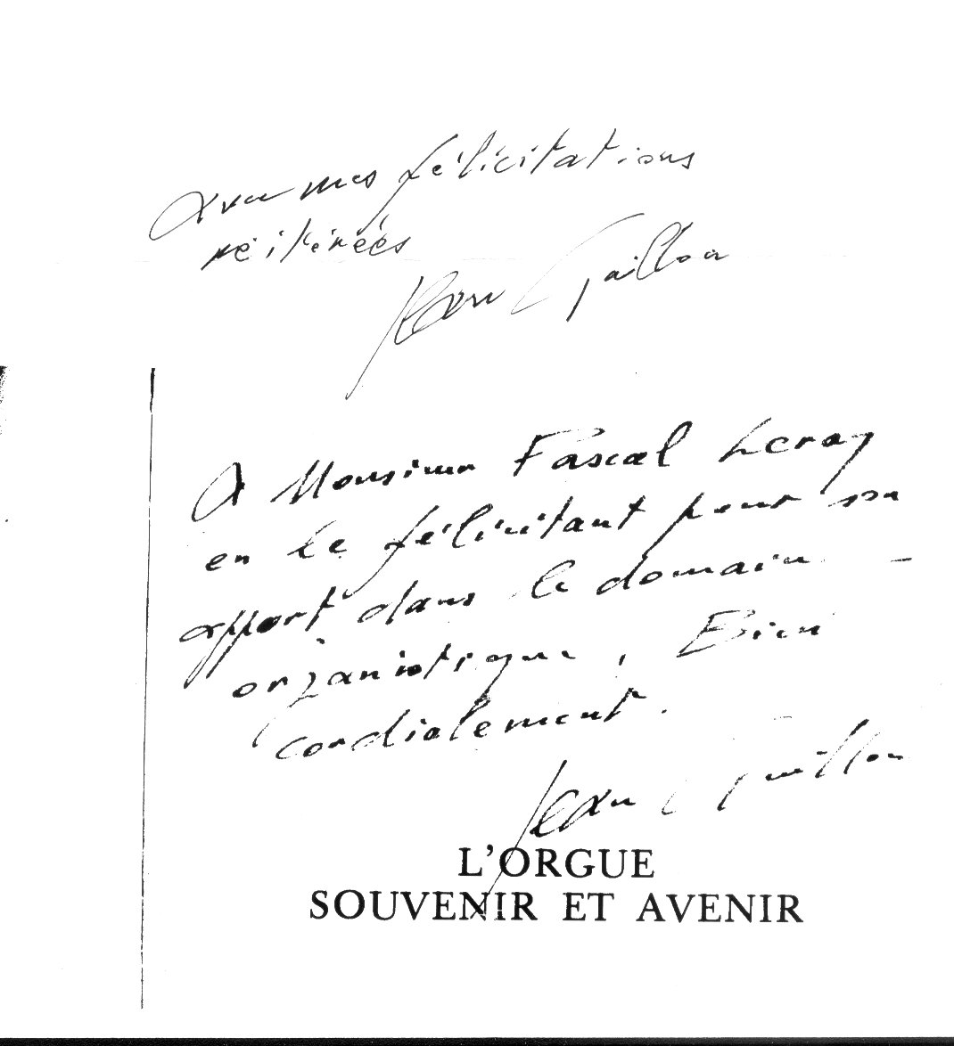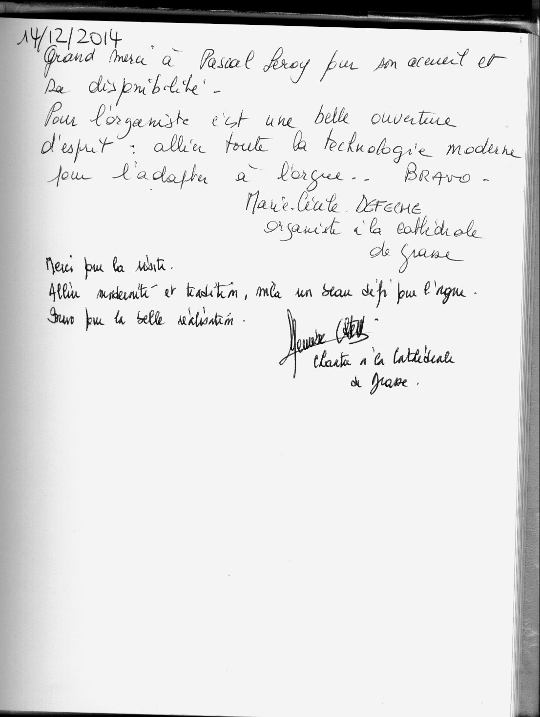 , Titulaire du grand orgue de la cathédrale de Grasse et de Monsieur Meurisse, chantre