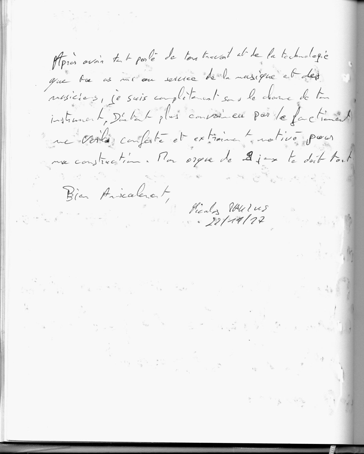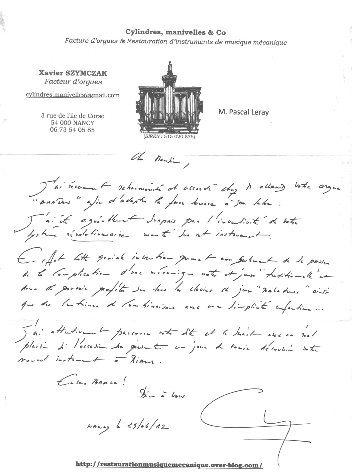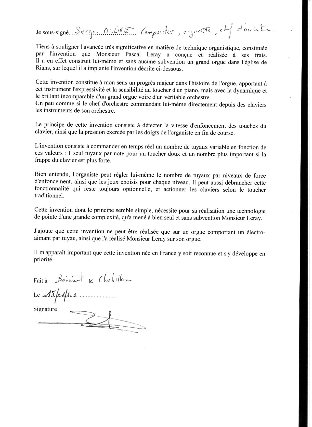 Temoignage de Saverio Tamburini, Facteur d'Orgues