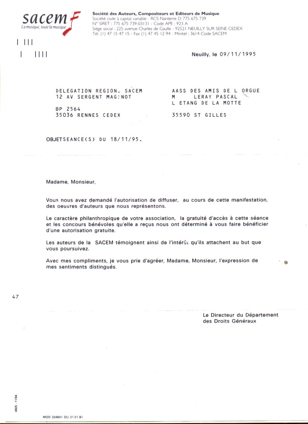 TEMOIGNAGE DE LA SACEM