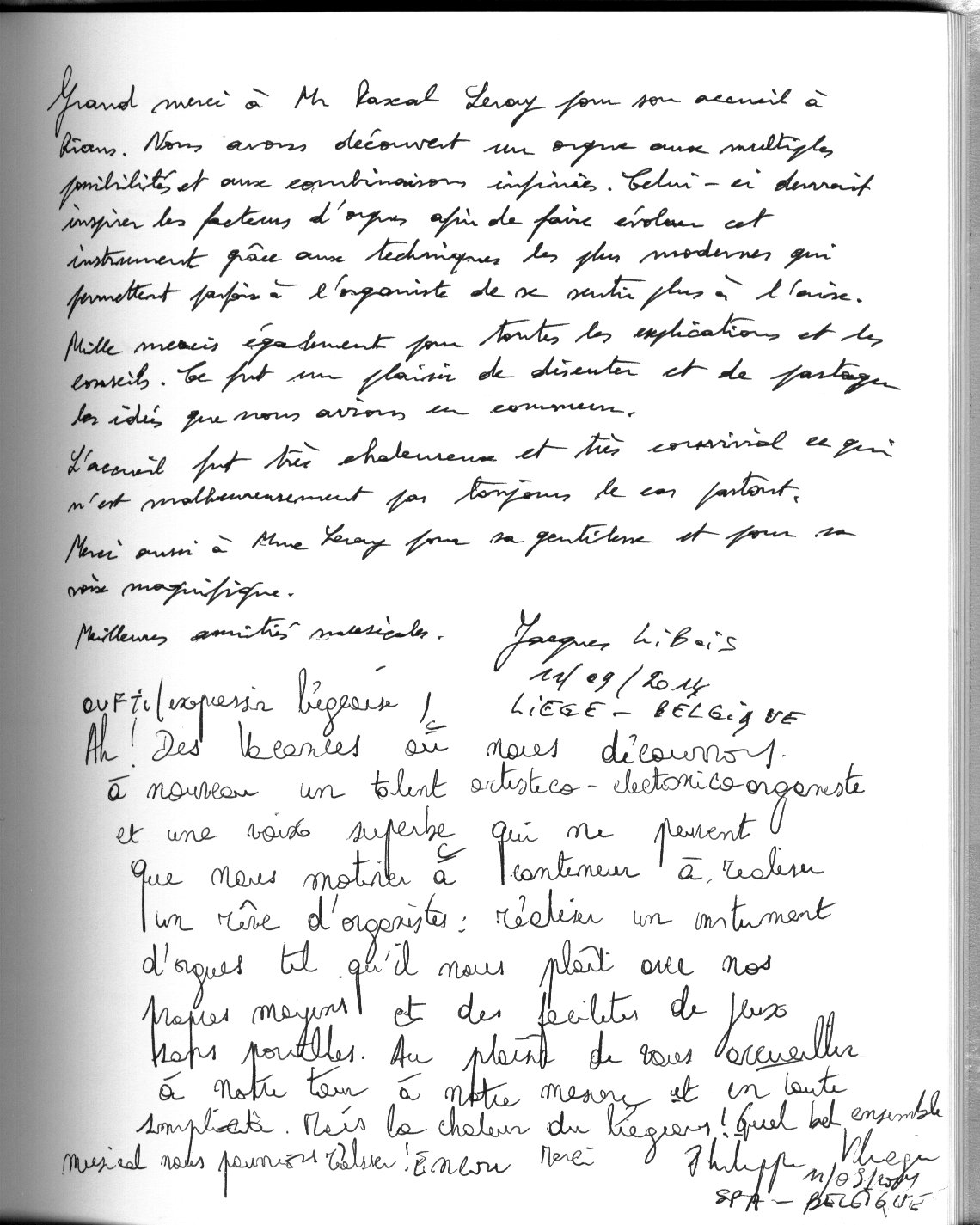 Témoignage Jacques Libois et Philippe Vliegen, organistes Belges