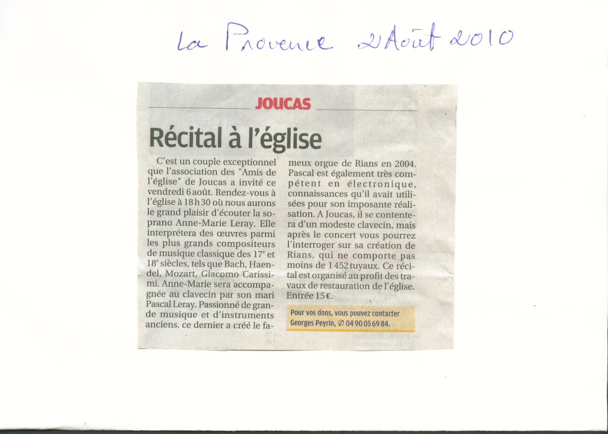 Concert Joucas 2009 - 2010 : témoignage
