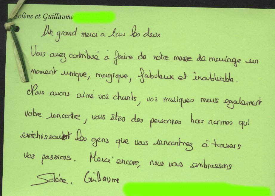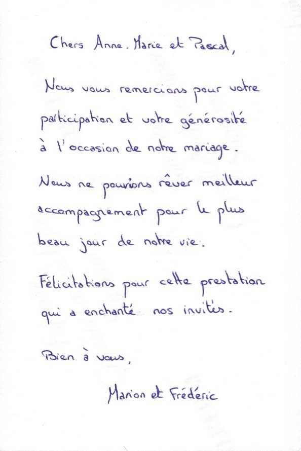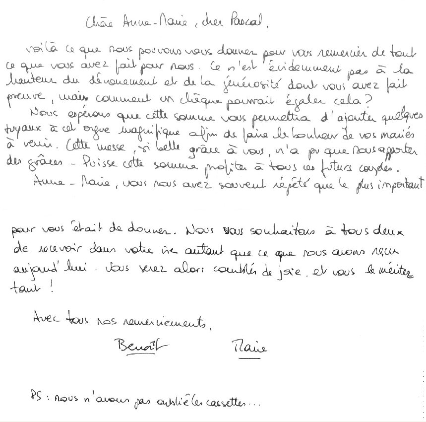 QUELQUES TEMOIGNAGES DE NOS MARIES, VISITEURS et CONCERTS :