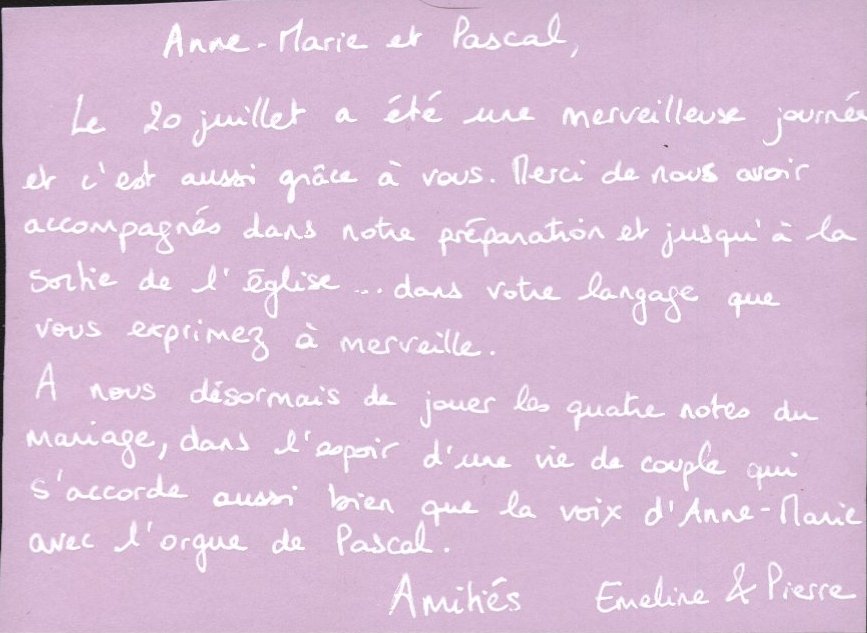 Témoignage d'Emilie et Guillaume 2011
